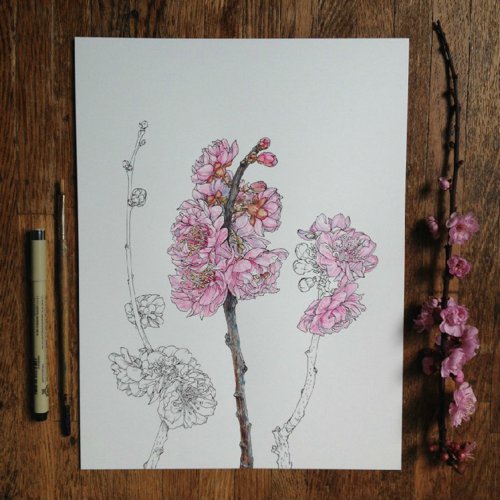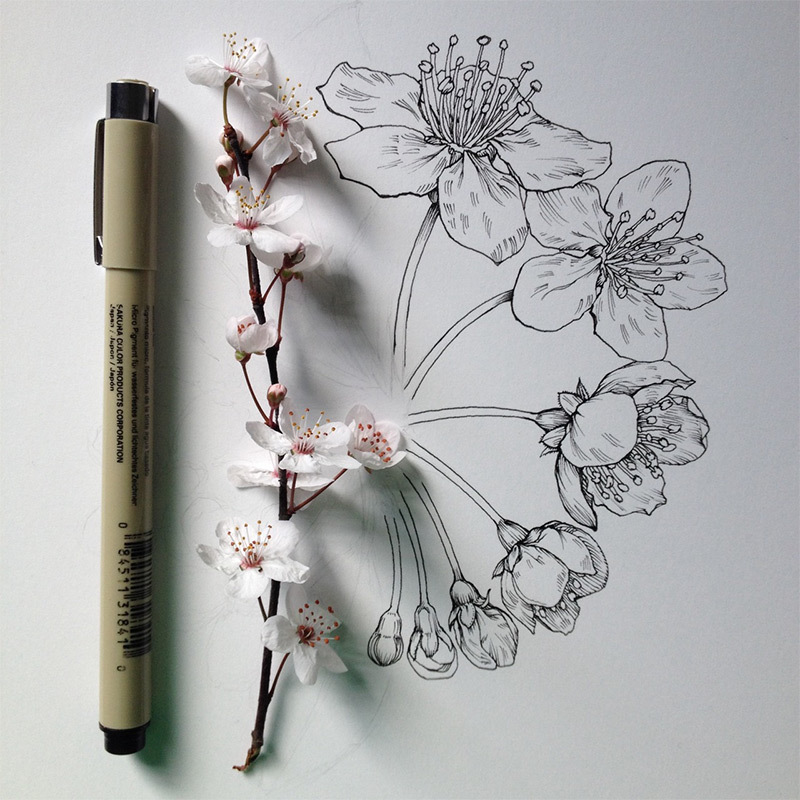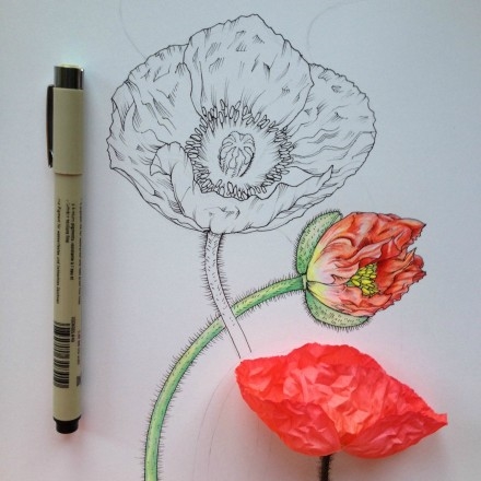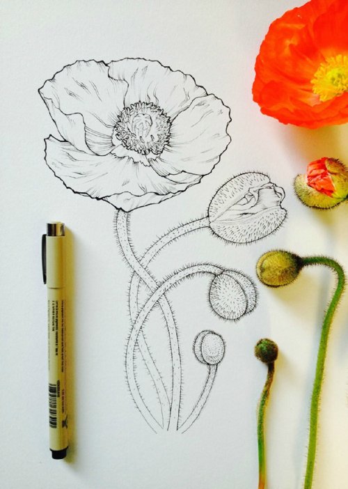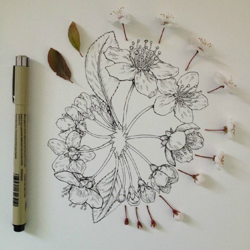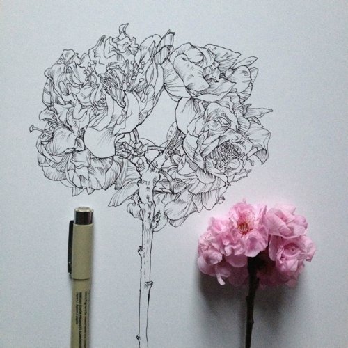 作品名称:Noel Badges Pugh花卉素描作品 开开彩乐创意美术插画艺术