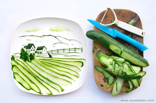来自马来西亚的艺术家Hong Yi带来了一组的新的美食作品,一个我们常见而又普通的餐盘作为画板,各种食材的组合让这只普通的餐盘生动而有趣,不得不惊叹,艺术家的创作和想象力,小小的黄瓜片都能组合成一幅美丽的田园风光!